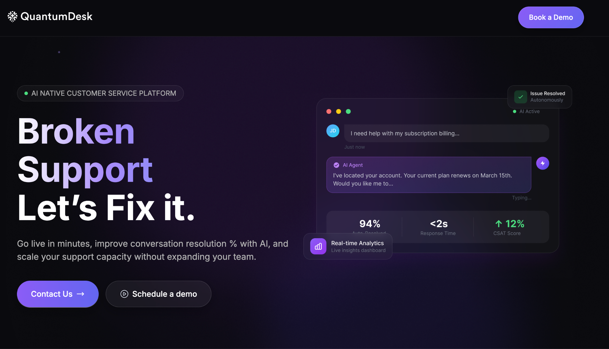 Book a demo with QuantumDesk and explore how it can improve your support workflow.