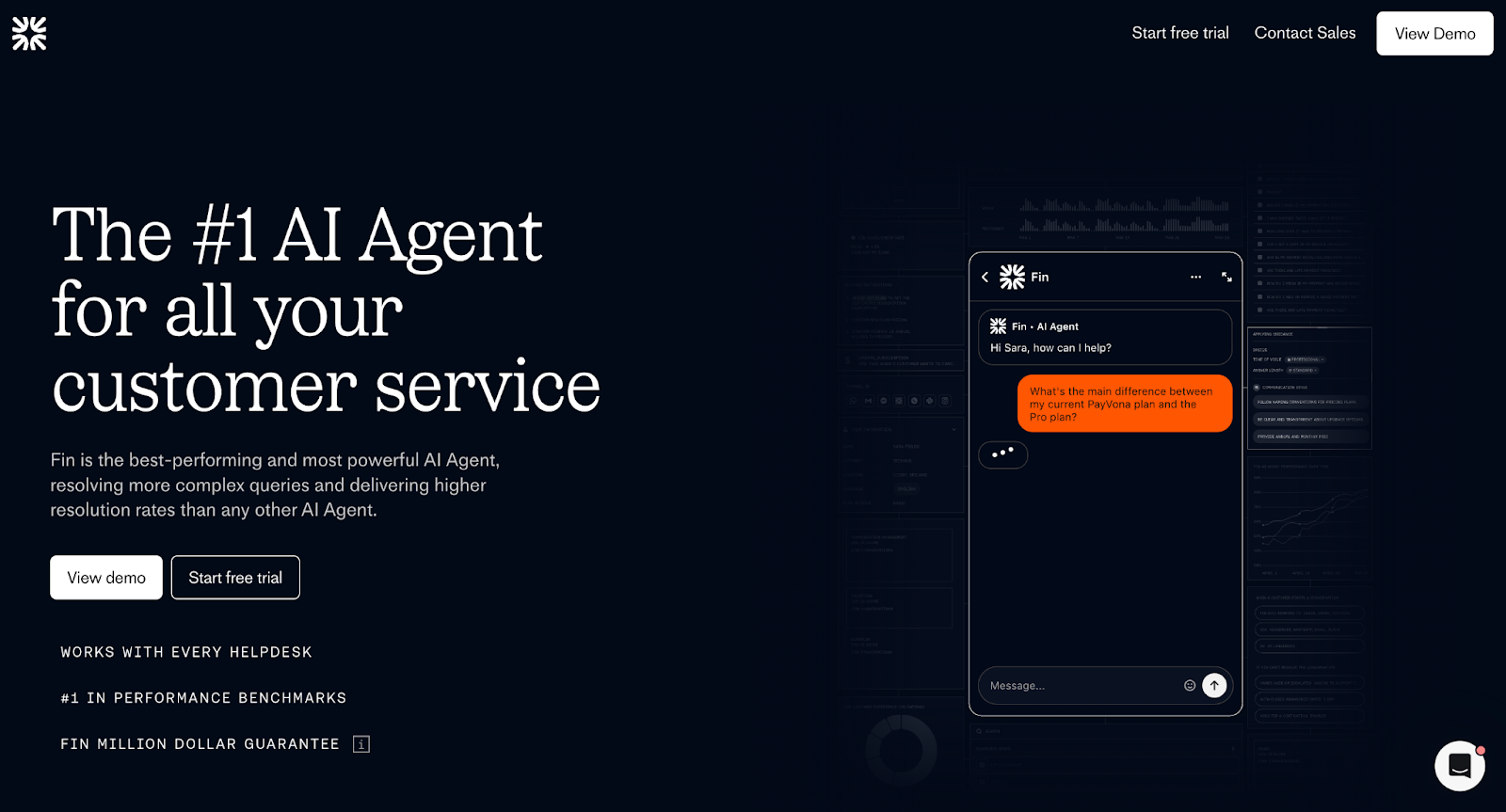 Intercom Fin AI is built to handle customer questions through chat and messaging. Instead of charging per agent, it charges based on how many queries the system resolves itself.